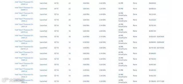 Intel Xeon E5 2600 v4系列处理器