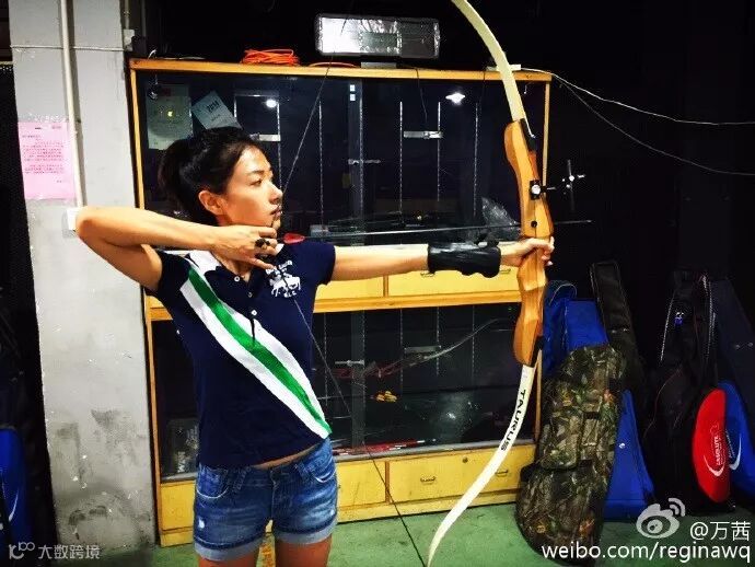 她玩射箭,从一开始脱靶的菜鸟,到后来有模有样,颇为娴熟。