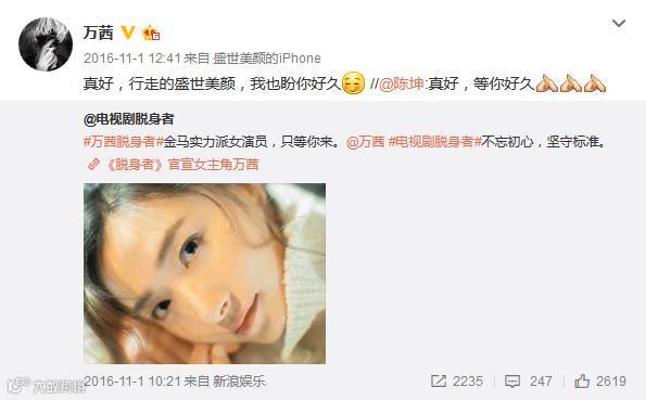 陈坤在看完这部电影后,当场决定邀请万茜出演谍战剧《脱身者》的女主角,而这部剧也是他重返电视荧幕之作。
