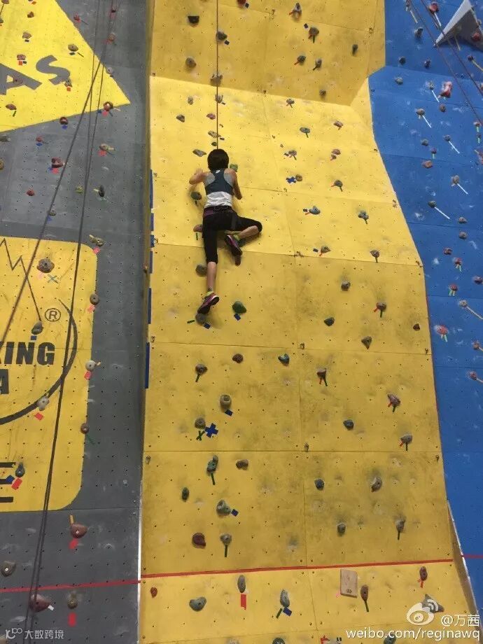 她玩攀岩,身姿矫健,连粉丝都称呼她为女汉子。