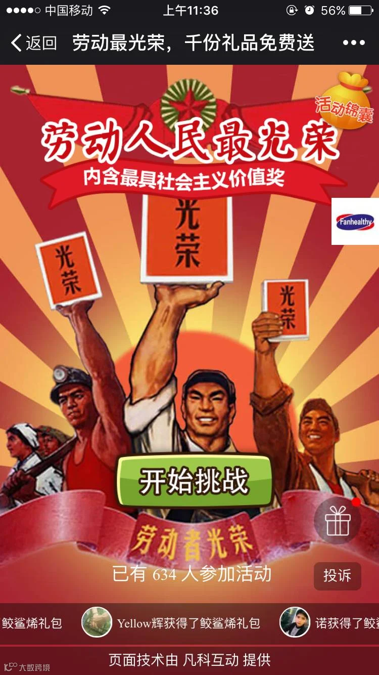 Fanhealthy为了犒赏广大劳动人民,特意通过勤劳致富的理念,采取了游戏送礼的方式,为同志们送上健康关爱,整个活动不收取任何费用(奖品包邮!)。