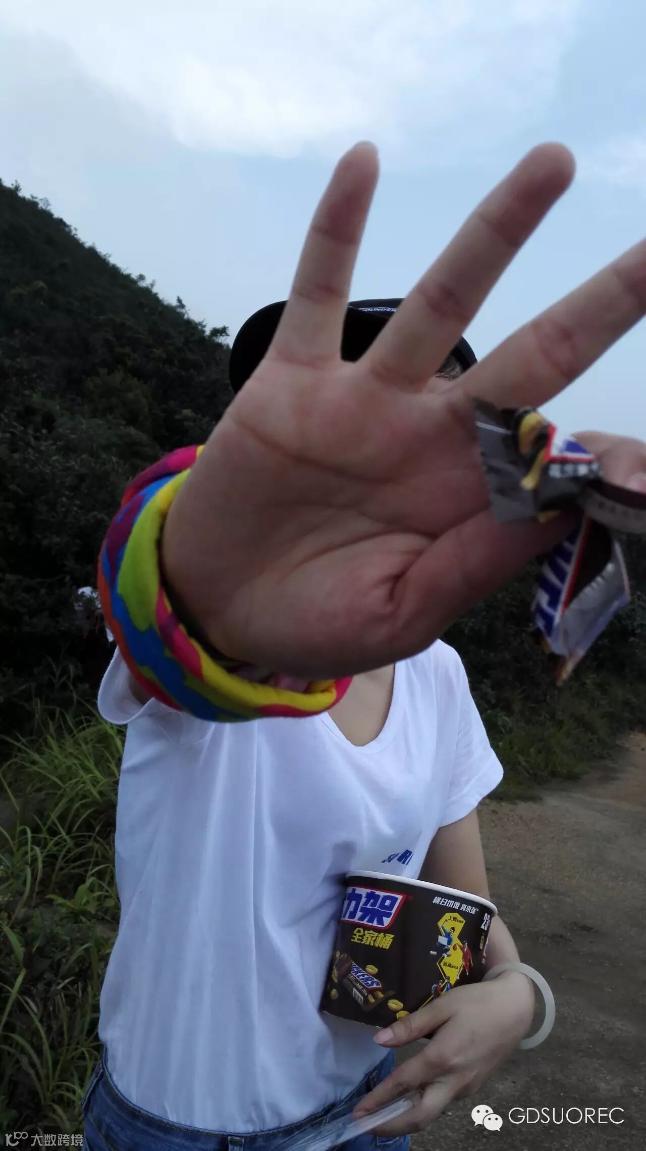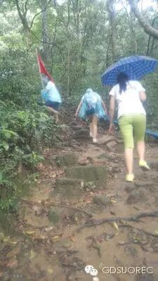 哈哈。。。只是下雨!所以,穿戴好一次性雨衣,迎难而上。原本以为美女们会退缩,结果呢?登山过程她们是最HIGH的,只是可惜了,拍摄工具全程密封在密封袋,照片略显模糊。