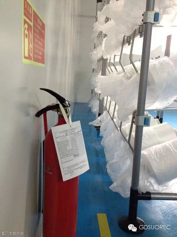 灭火器在每个车间都有布置,防患于未然。不可有点小可惜,粘板区的黄线标识有点变形了。