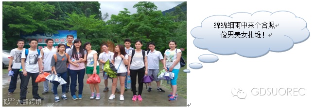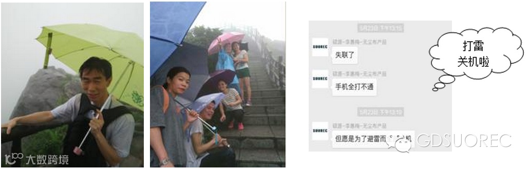 雨伞被风刮得一只手撑不住,没能留个全体合影是个遗憾!