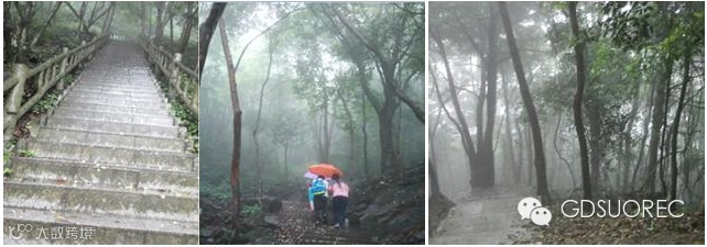 就算撑雨伞、穿着雨衣,全身都找不到干的地方,连手机也在泡水!整个山顶在镜头里犹如远处压来一团乌云,着实给吓了一跳。