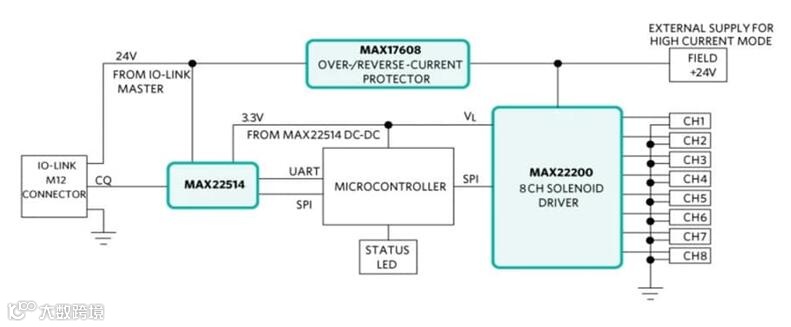 图2.MAXREFDES278# IO-Link 8通道电磁阀执行器参考设计