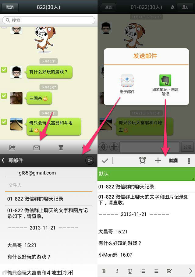 还可以将聊天记录备份到你的电子邮箱(或你的印象笔记私有邮箱)!