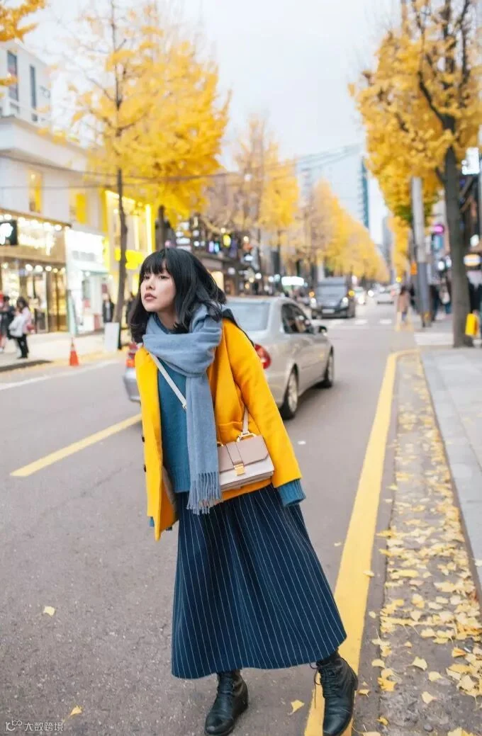 而这其中,特别是在秋天,犹以黄+蓝是最舒服的颜色搭配,而且拍出来真心好看。