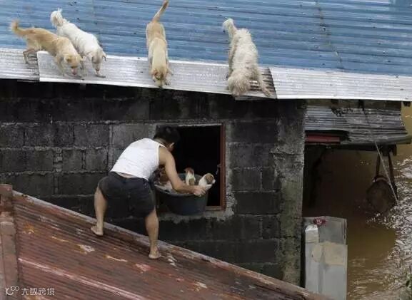 冒着生命危险在救被困的小狗