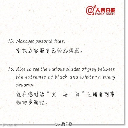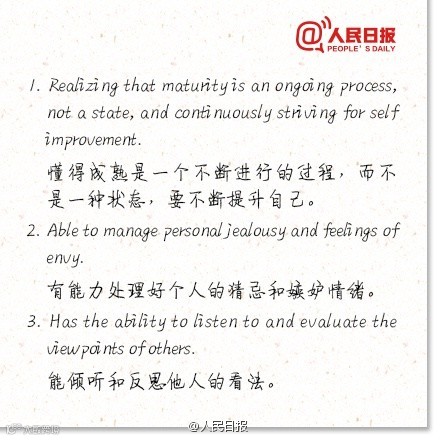 所谓成熟,不是世故、不是暮气、不是青春的褪色和梦想的远逝。那些,不过是被世俗磨去了棱角,是精神的早衰和个性的夭亡。真正的成熟,是独特个性的形成、真实自我的发现,是精神的结果和丰收,是对生活的理解、对他人的宽容、对责任的担当。20个关于成熟的标志,你做到几个?