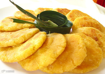 4.用大拇指和食指的虎口处挤成大小均称的丸子,放温油中小火炸至全部在油中浮起,呈金黄色捞出