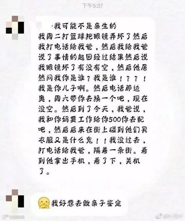 真事,我初一的时候让我爸给我开家长会,我爸找不到我的学校于是给我小学五年级的老师打了电话,我爸对我读初中这件事毫不知情。