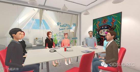 异地办公也没关系,可以通过VR社交技术,突破传统形式的电话、视频会议,共同置身同一个会议室或其他特定场景里,进行交流互动。