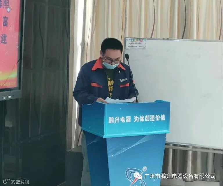 表彰会开始后,方舱援建总指挥陈浩泉总监首先发表了富有力量的讲话。陈总监指出,一个好的战略,必须依赖团队的同心协力,统一目标,以及坚定不移的执行,才可以得以实现。所以我们要不断锤炼更强大的团队,这样我们就能执行任何具有竞争性的任务。我们必须要有“同一个团队,同一个目标,同一个策略,同一个执行“的指导思想。这次我们很高兴的看到,我们鹏升的团队,包括客服项目、技术、采购、生产计划、钣金和成套、行政后勤物流等,完美的按照这个思想去落实行动计划,圆满完成了客户交给我们的任务。我们再次打了一场硬仗,也夯实了团队职业素养,更表现出了我们整个团队有担当的能力,再一次完美诠释了鹏升电器“客户第一,为客户创造价值”的企业价值观。