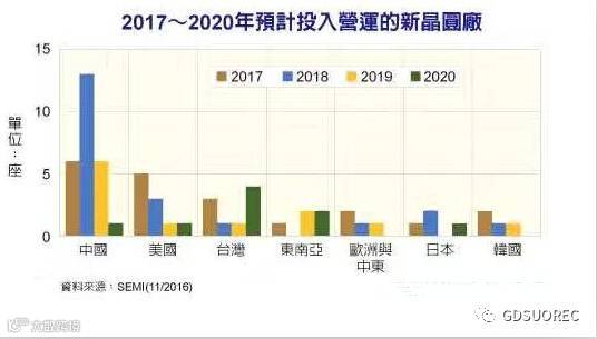 据台湾媒体报道,SEMI近日更新其全球晶圆厂预估报告,并预估在2017~2020年间,全球将有62座新的晶圆厂投入营运。这62座晶圆厂中,只有7座是研发用的晶圆厂,其他晶圆厂都是量产型厂房。以地理区来看,中国大陆在这段期间将有26座新的晶圆厂投入营运,占新增晶圆厂的比重高达42%。美国则有10座,台湾为9座。