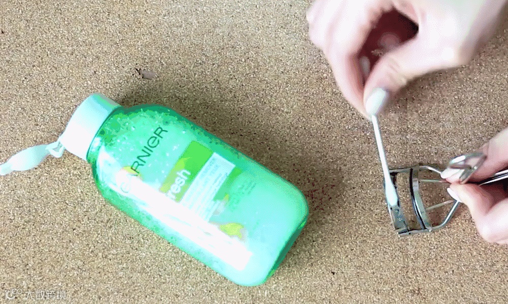 ▼睫毛夹上必定会残留下很多睫毛膏,可以用棉签粘取卸妆水进行清洗,细小的位置都能轻易照顾到。