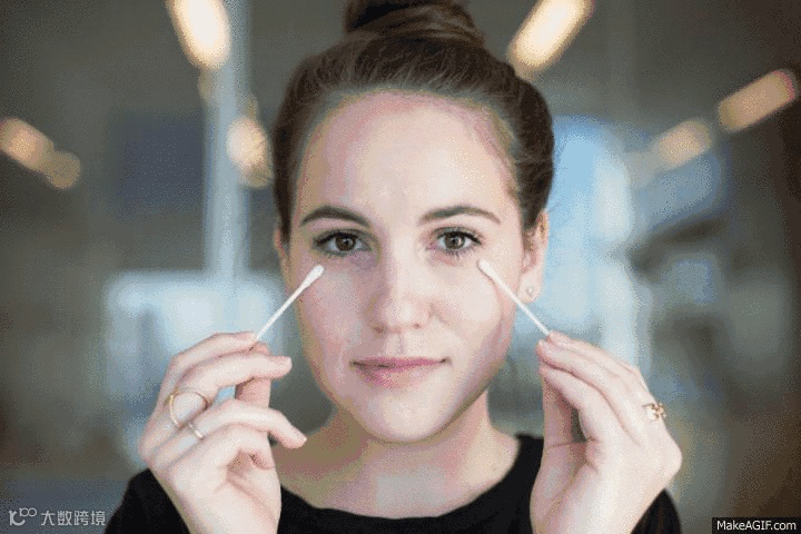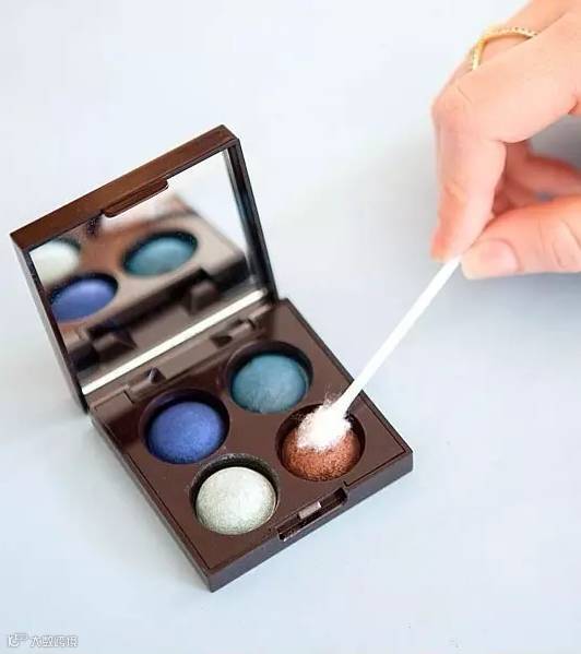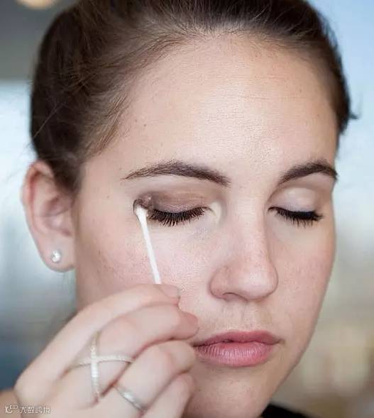 ▼涂抹眼影时如果没有刷子,可以用棉签来进行晕染,需要大面积涂抹,可以将棉签上的棉花揉松。