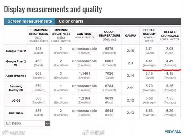 Android Central的实测显示,Pixel 2的屏幕相较肉眼所见,褪色明显。