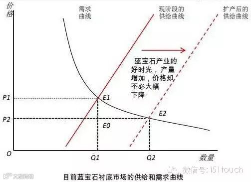 正是进入消费电子供应链,让蓝宝石的需求弹性大为提升,用于消费电子的蓝宝石,拥有了一定程度的奢侈品的属性,价格弹性将会大大提升。换言之,不同的消费者对蓝宝石的支付意愿可能会大不相同,如果价格太贵,那么就只能少数人拥有,但是如果价格能多下降一些,那么必定会刺激更多的需求,需求曲线变成一根倾斜的曲线。如果我们再结合衬底市场的刚性需求,蓝宝石市场需求曲线变成如下的一条弯了的曲线。