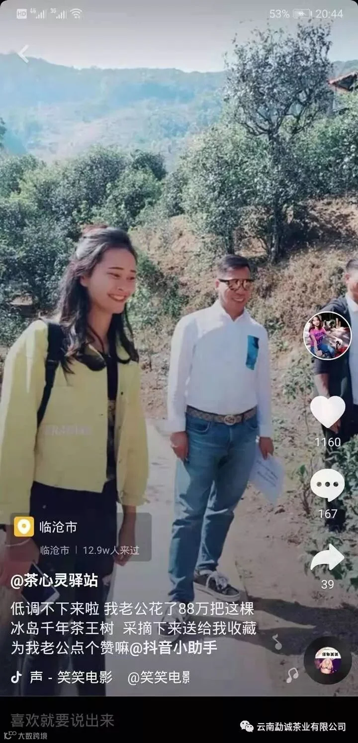 2019年在春茶热潮刚要到来的时候,在临沧勐库茶区,冰岛老寨传出88万元包采冰岛茶王树的承包价格。据网络卫视截图消息称:“冰岛千年茶王树,今年所有采摘归我了,合同已签,88万成交约四公斤茶,就等采摘了。”另一条消息称:“低调不下来啦,我老公花了88万把这棵冰岛千年茶王树,采摘下来送给我收藏,为我老公点赞啦。”