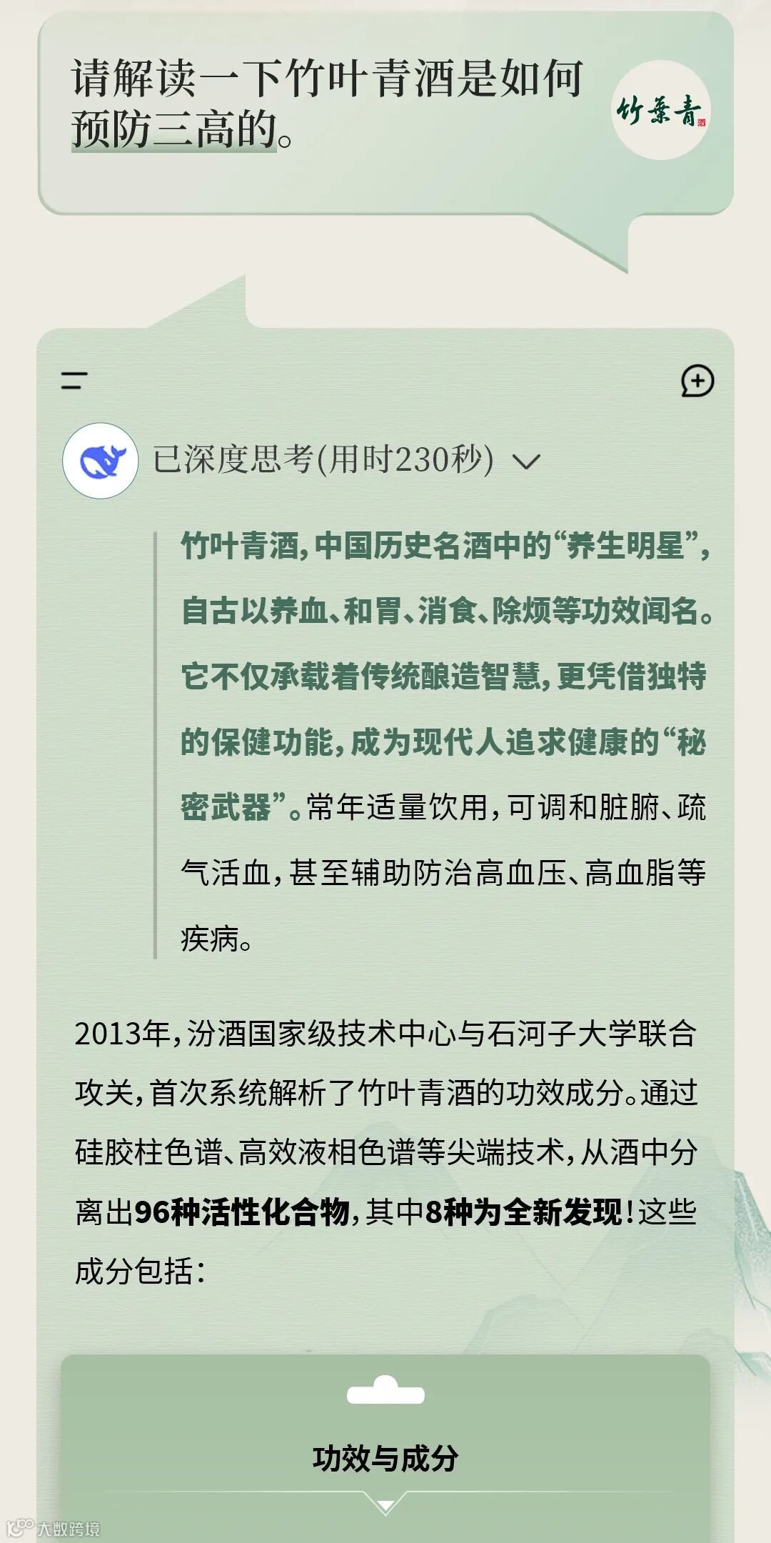 DeepSeek为你解读竹叶青酒健康密码 | 预防“三高”的秘密武器