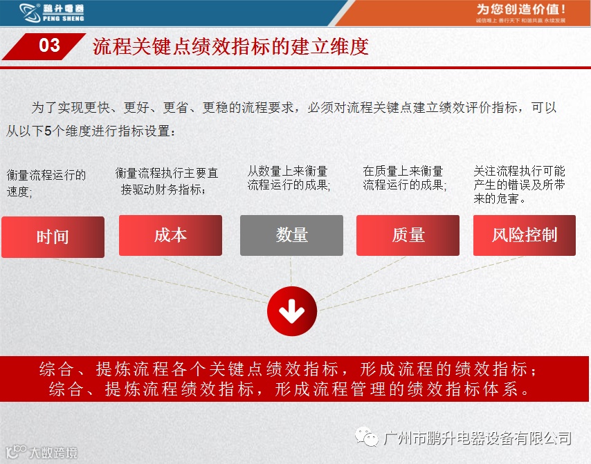 最后,李主管讲解了流程管理与绩效考核结合的方法,包括流程关键点的识别与流程绩效指标的设立。以及企业打造流程文化的步骤,企业自上而下的重视流程对事的规范以及通过流程管理对人的培养提升,持续优化,形成长期流程管理机制,使得企业真正成为一台巨大的自动运行、自动纠错、自动更新优化程序的高效运转的机器。