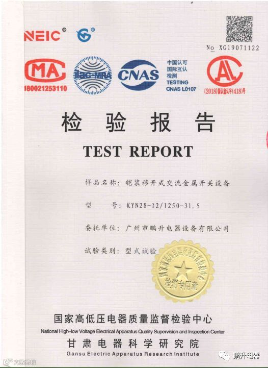 我司于2019年8月成功取得了高压配电柜型式实验报告4本证书,这标志着公司高压配电柜可以正式投入生产,为公司在配电行业的后续发展夯实基础。