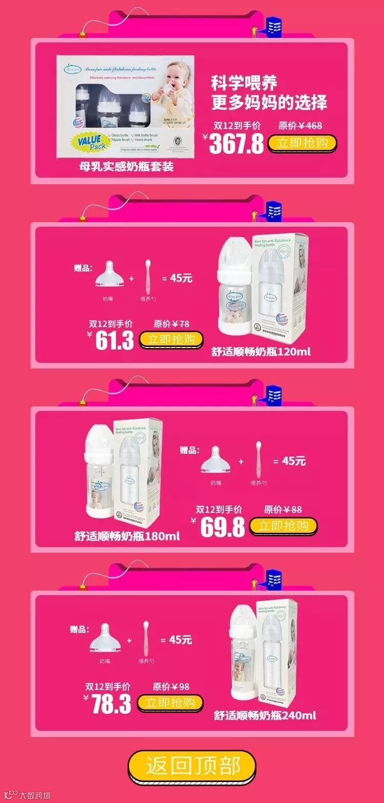 惠购优质防胀气奶瓶!