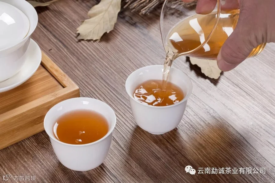 3,汤色。从汤色辨别干仓生茶的汤色是栗红色,陈期在七,八年以上的,略转深栗色。如干仓普洱茶 ,茶汤呈鲜栗红色,而有些,已经转向深栗色了。湿仓茶的茶汤像熟茶一样呈暗栗色,甚至变黑色