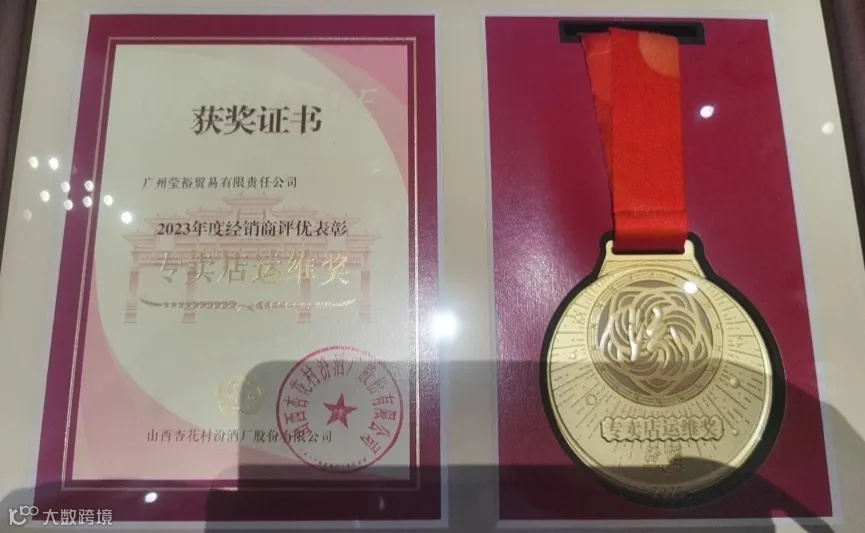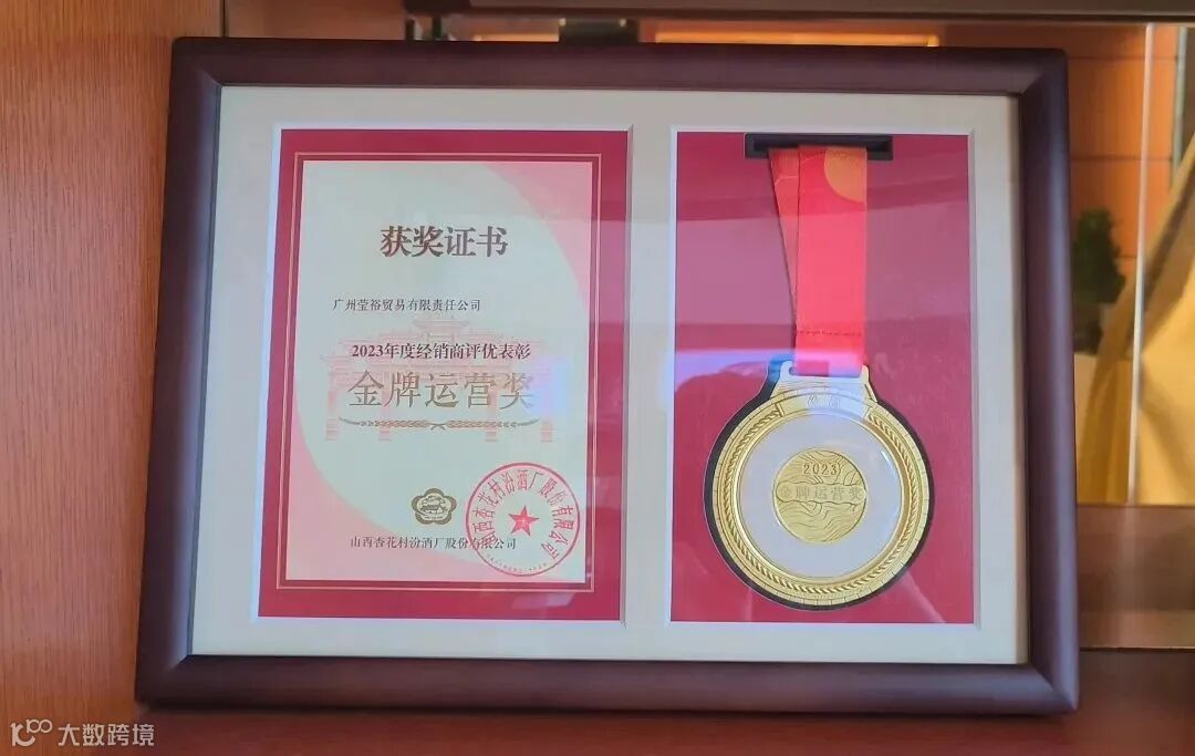 广州莹裕贸易有限责任公司荣获汾酒2023年度经销商评优表彰“金牌运营奖”和“专卖店运维奖”,广州莹裕贸易有限责任公司董事长谭健蓉受邀出席本次活动并领奖。