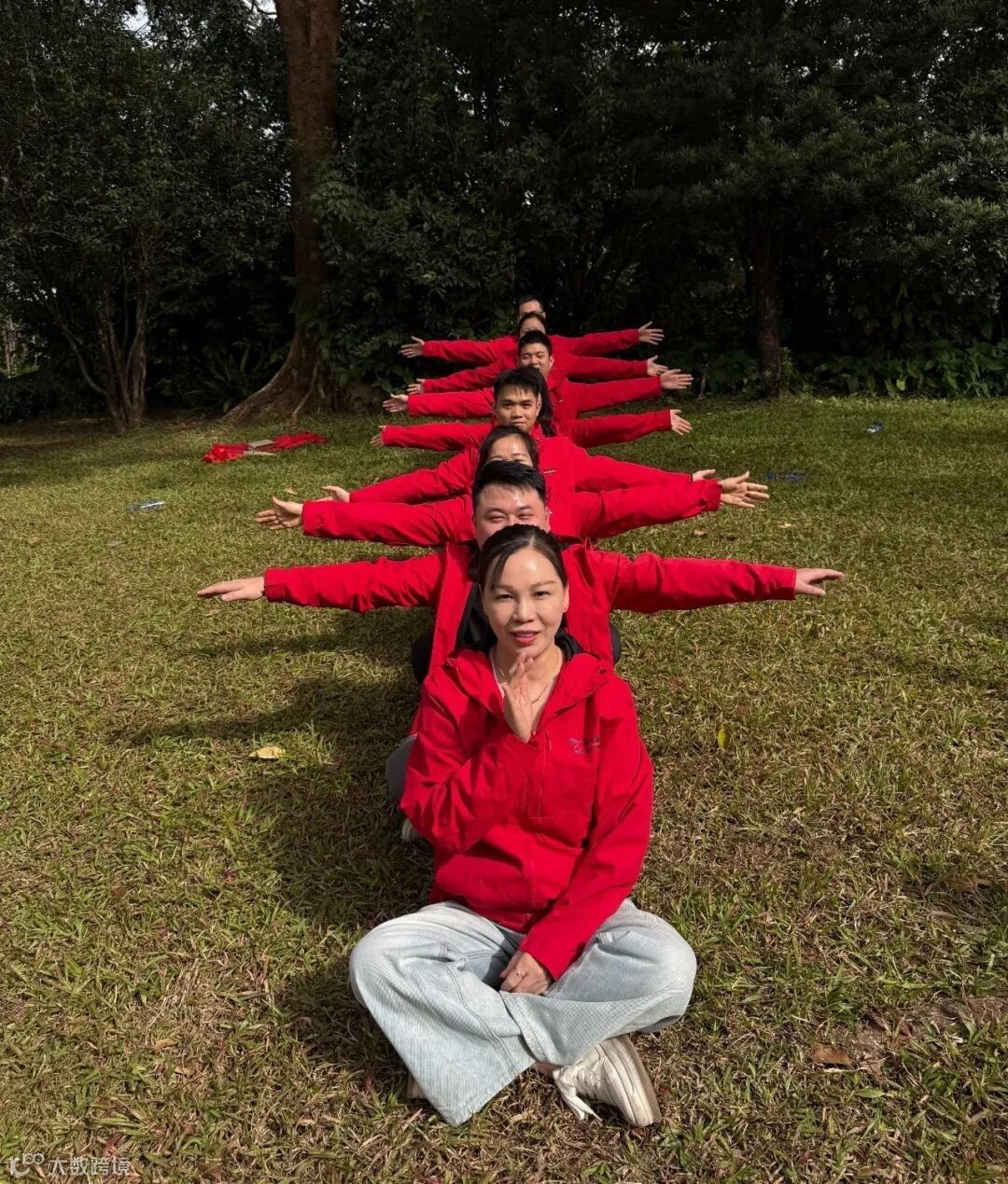 当日下午,阳光正好,销售精英们前往风景如画的云台花园,开展了一场以“硬核实力铸后盾 雄心万丈拓市场”为主题的户外团建活动。绿草如茵,繁花似锦,身着统一红色战袍的鹏升团队成为了花园里最亮丽的风景线。