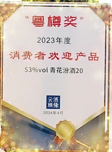2024我司经销产品53度青花汾酒20荣获