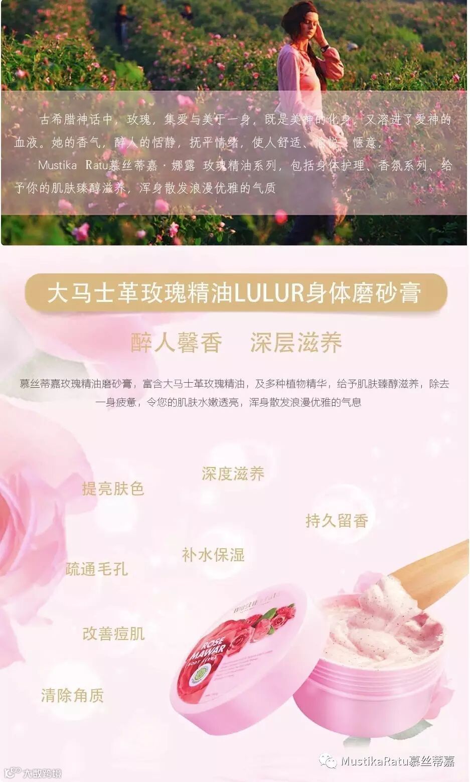 42年前,皇室公主创建的Musitka Ratu 慕丝蒂嘉.娜露,在这样的秘方中添加名贵的精油,滋养成分更臻醇,肌肤香气久久萦绕。