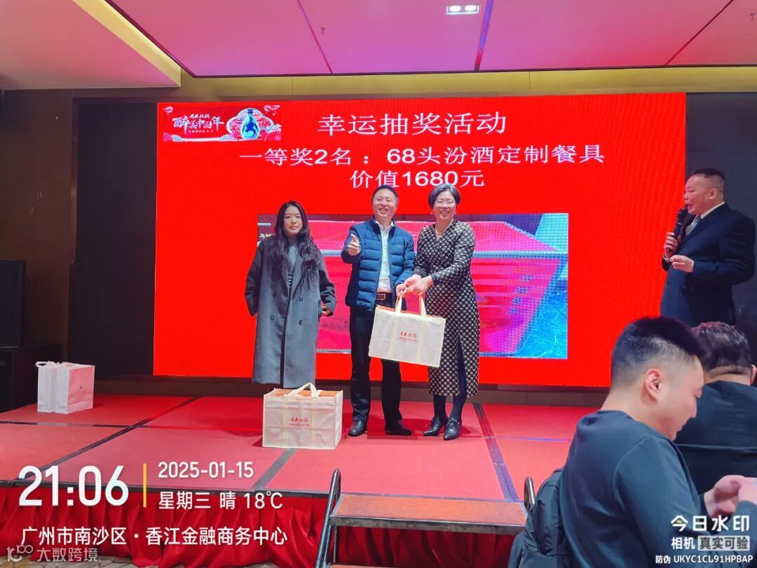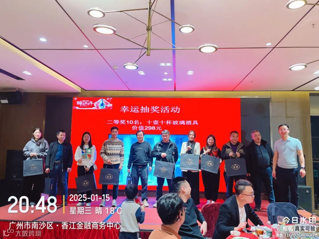 2024全年,青花汾酒南沙区核心终端在市场上取得了不俗的成绩,莹裕酒业董事长谭健蓉女士对各位老板表示衷心感谢,承蒙各位一直以来的鼎力相助和大力支持,在2025年我们将提供更加饱满的热情服务,我们一起努力,业绩定会翻倍!