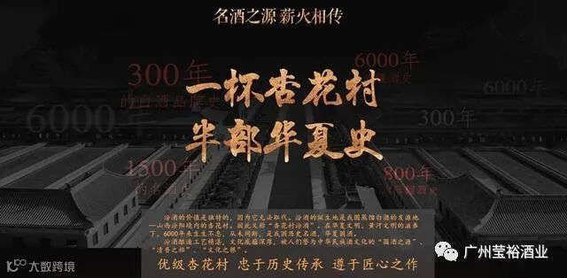 6000年传承历史,1500年成名史,800年白酒祖庭地位,一个酒的品牌史,历数千年而绵延不绝,对于汾酒来说,千年的文化积淀无疑是她得天独厚的独特魅力所在。经过千年洗礼,自古便以"色、香、味"三绝著称的中华汾酒如今散发出了逾久弥香的醉人气息。