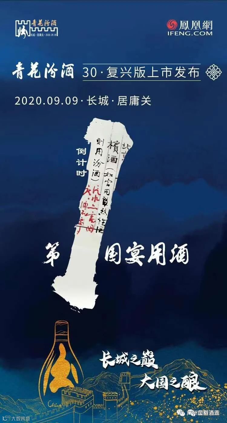 ,中国酒魂引领汾酒复兴!9月9日,汾酒党委书记、董事长李秋喜携高端新品青花汾酒30·复兴版亮相居庸关长城,