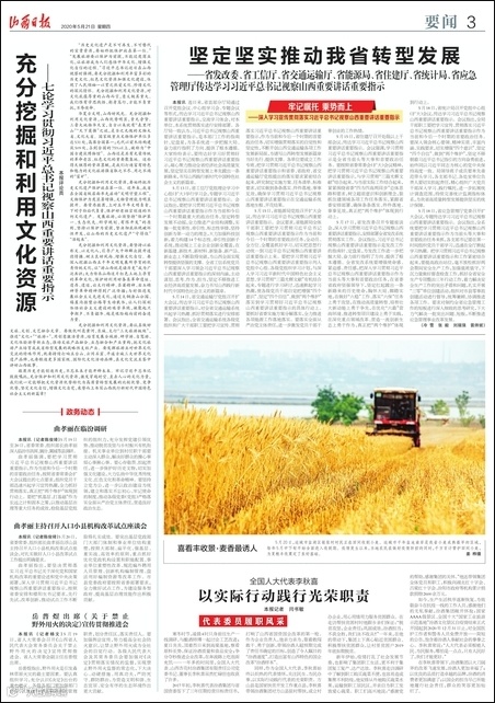 5月21日,《山西日报》发表题为《全国人大代表李秋喜:以实际行动践行光荣职责》的报道,讲述了全国人大代表,汾酒党委书记、董事长李秋喜在国企国资改革、帮扶脱贫攻坚、部署安排疫情防控、企业复工复产工作方面,始终以炽热的代表情怀,关注民生、为民办事,以实际行动践行代表光荣职责的主要事迹。
