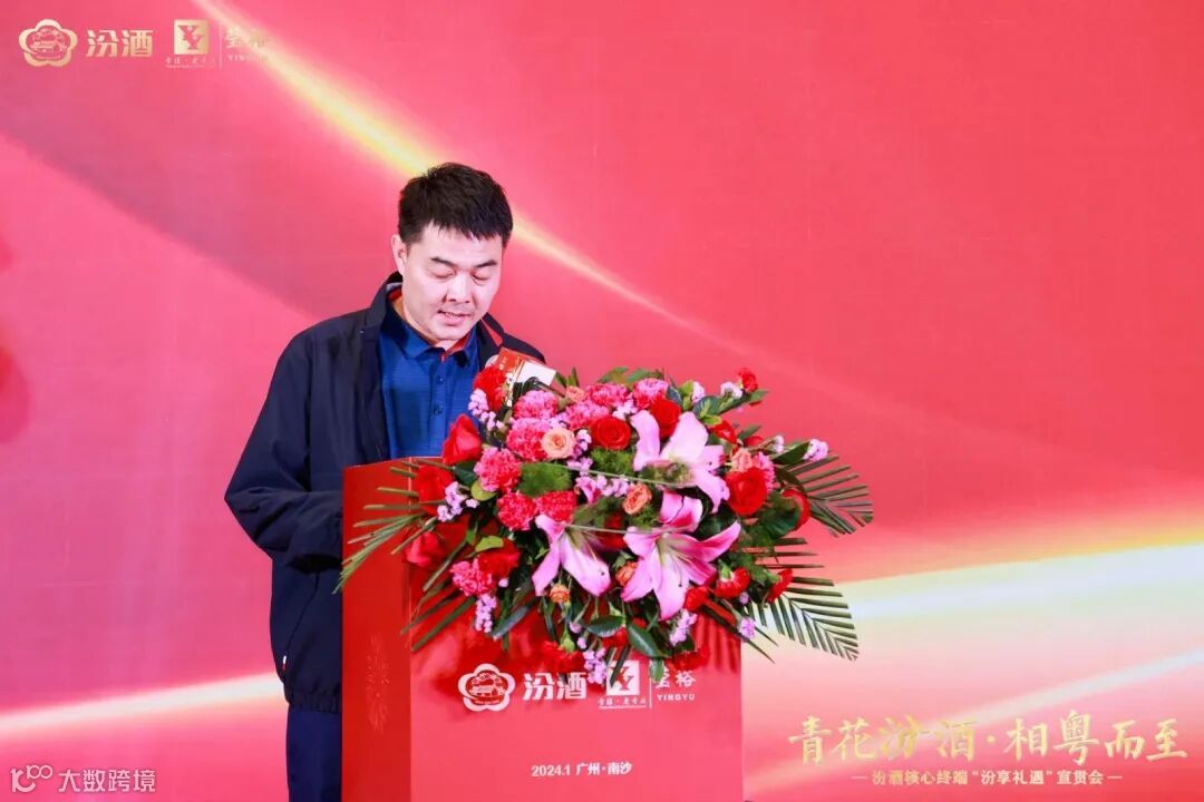 广州莹裕贸易有限责任公司(汾酒南沙总代)董事长:谭健蓉致辞,对各位贵宾的到来表示诚挚欢迎!今天的盛宴是我们2023年的约定,也是我们2024的新启点!2024年新时代的汾酒,将是共创、共享、共赢!这也是我们公司一直以来经营的理念!我愿成为各位贵宾们和合作伙伴们的长期酒水服务员!我们要齐心协力,为每位信任和支持我们的消费者,提供最优质的产品和服务,这是我莹裕公司全体同事们的使命!