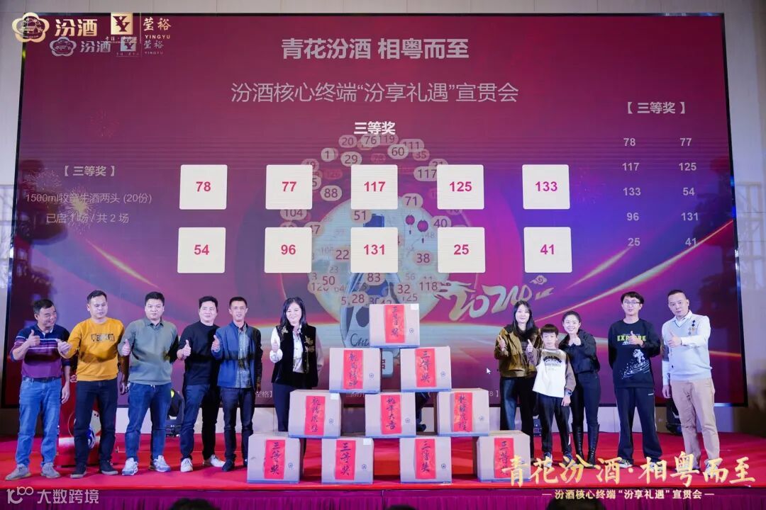 这杯酒有三个祝愿,一祝我们汾酒事业兴旺发达,财源广进;二祝我们远方的父母亲人身体健康,万事如意;三祝我们在座的每位朋友新年行好运,心想事成,步步高升。
