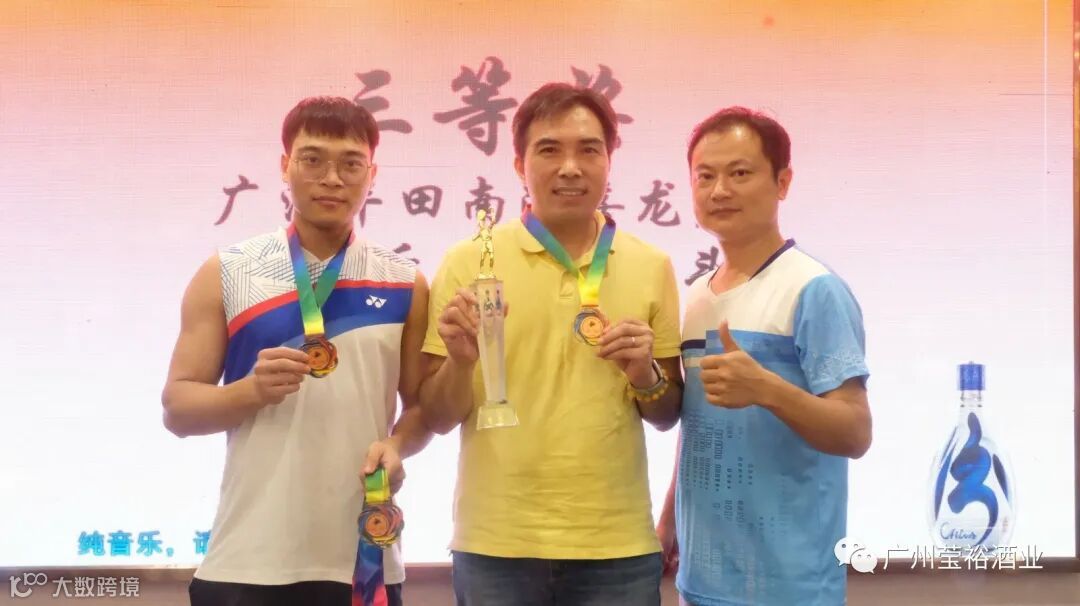 经过激烈角逐,广州市南沙文化创意产业协会代表队、中交城投控股有限公司代表队、广汽丰田南沙喜龙店(喜龙控股集团)代表队分别斩获“青花汾酒杯”企联羽毛球团体赛团体冠、亚、季军。