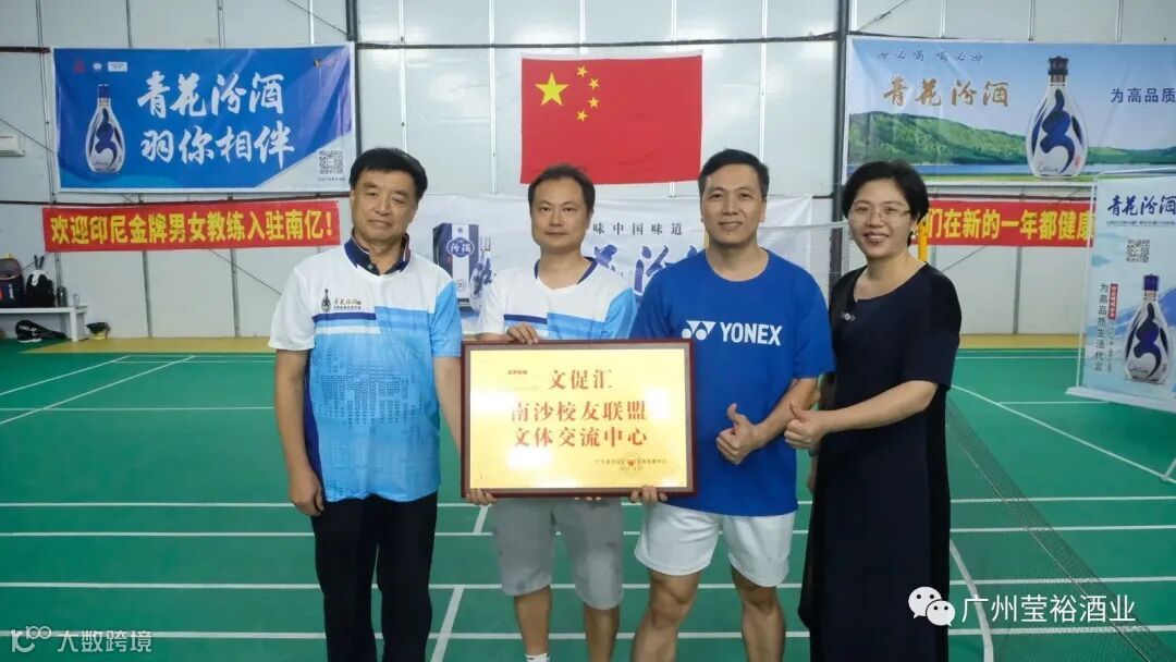 授匾仪式:授权南沙区南亿羽毛球馆作为文促汇南沙校友联盟文体交流中心。