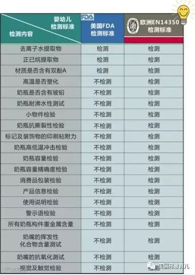 目前全球最为严格的安全检测审核标准就是欧盟标准。因为欧盟EN14350检测不仅会检测奶瓶基础配件,连奶瓶的小配件和奶瓶的外包装是否符合标准、环保要求也一并检测。它所检测的东西很全面,连一些细节都不放过。但凡有一项原材料不符合环境保护或是不符合婴幼儿安全使用,都是无法通过欧洲标准检测的。