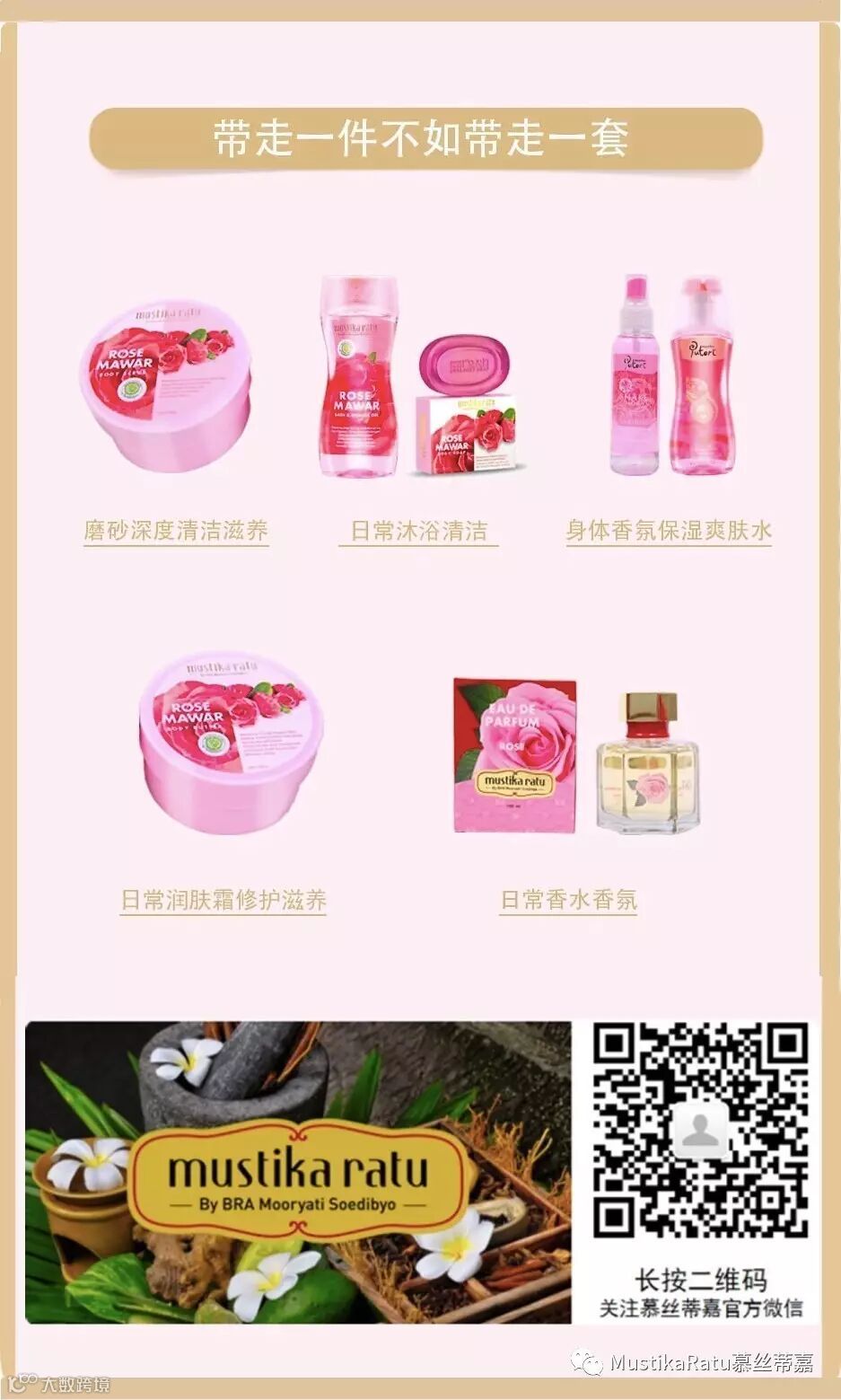 最近1、2年突然很流行“香水沐浴露”,与香水的香精不同的是,Mustika Ratu身体护肤系列精油沐浴露,添加的是纯植物精油,精油带来的自然香味以及给予精神上的疗愈效果,是香水香精所不能比拟的。