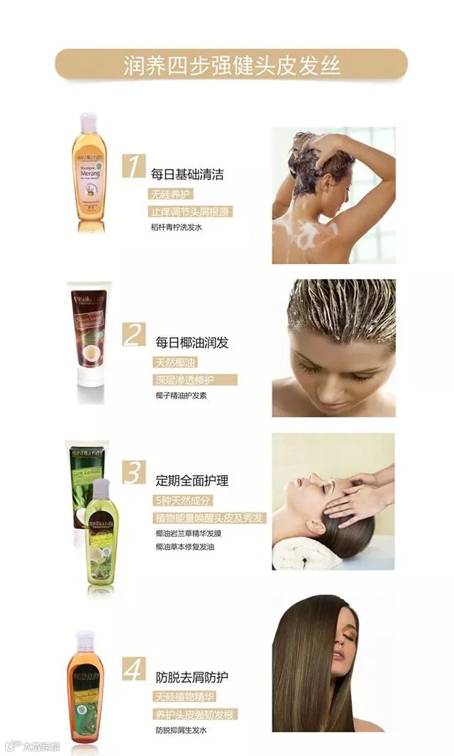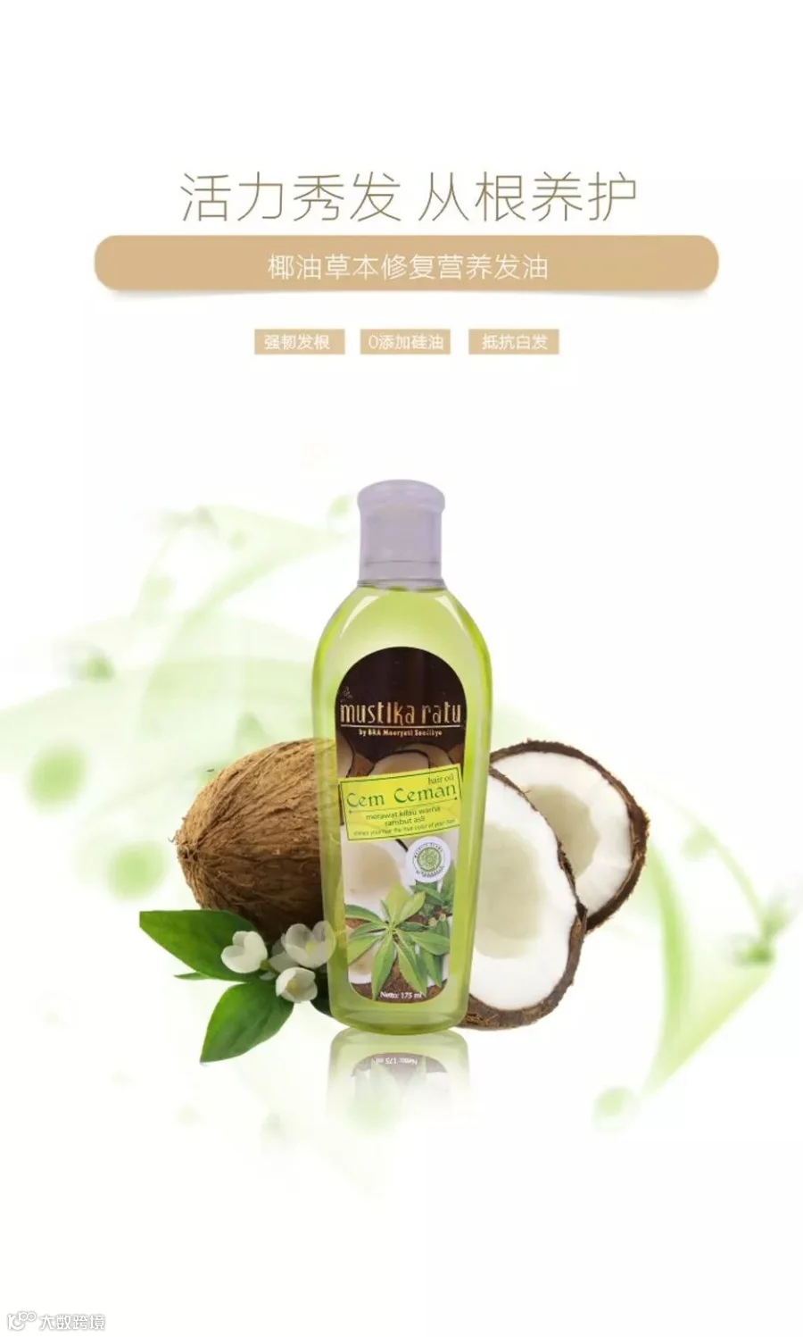 椰油草本修复发油:使用椰子油经传统工艺制成,特别添加天然草本成分,令秀发更加闪亮,阻止白发生长&强化发根防止断发/脱发。