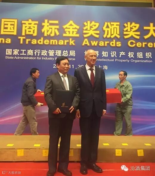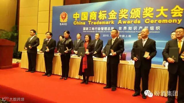 2015年11月30日,国家工商总局与世界知识产权组织在上海联合召开“2015年中国商标金奖”颁奖大会,山西杏花村汾酒厂股份有限公司荣膺“2015年中国商标金奖——商标运用奖”,汾酒集团公司董事长李秋喜到现场领奖。