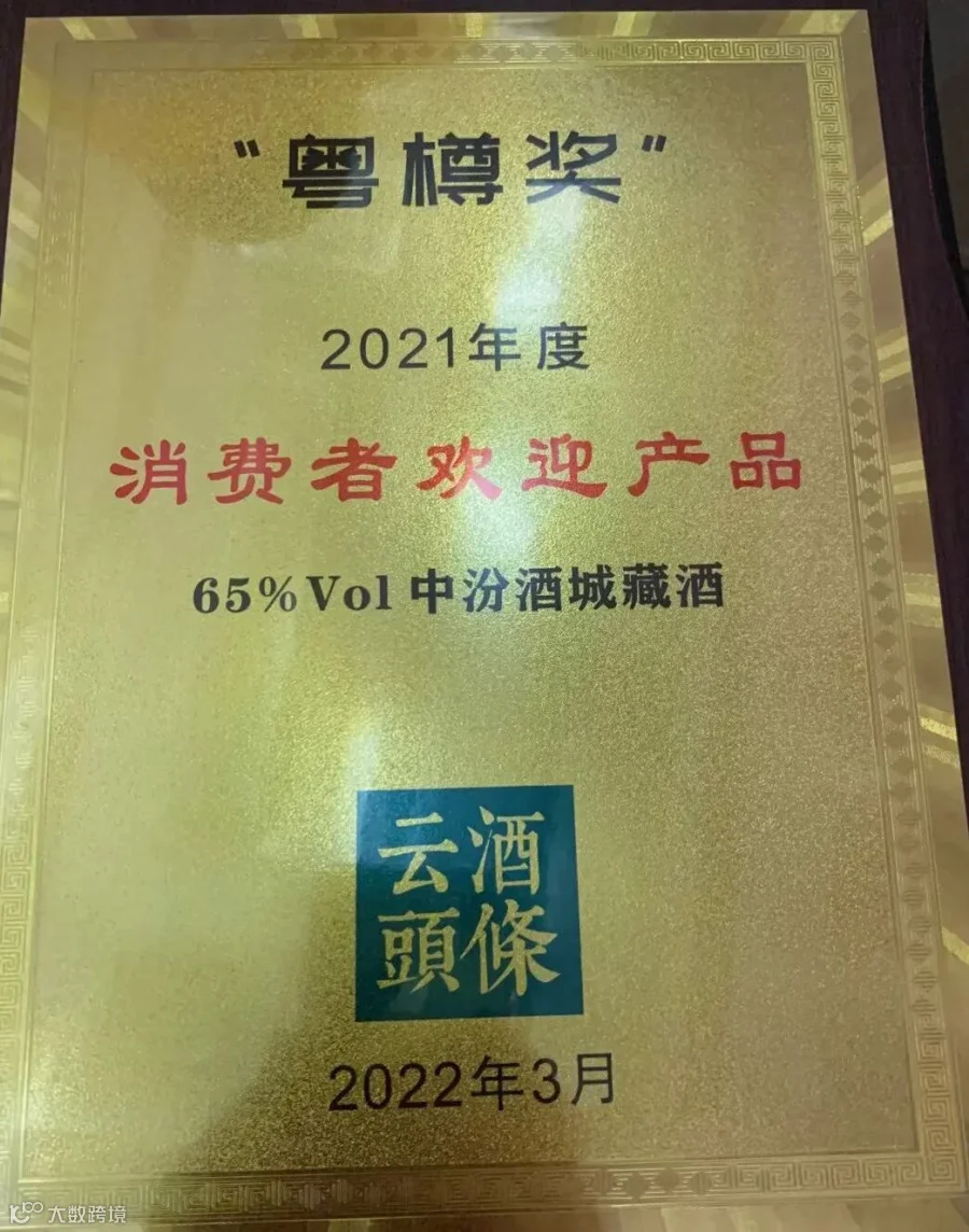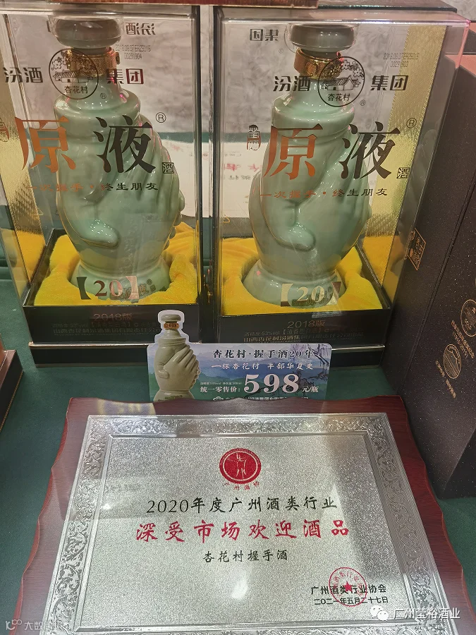 祝贺53度杏花村握手原液汾酒荣获“广州酒类行业深受市场欢迎酒品”称号