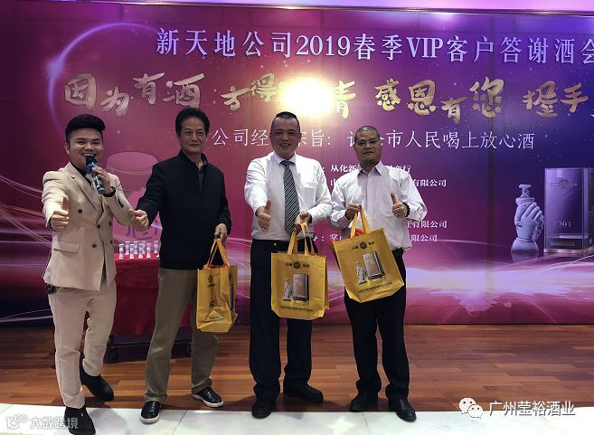 4月19日晚,从化新天地酒业公司于从化南海食街举办2019春季VIP客户答谢会,也是庆祝新天地公司成立二十四周年!