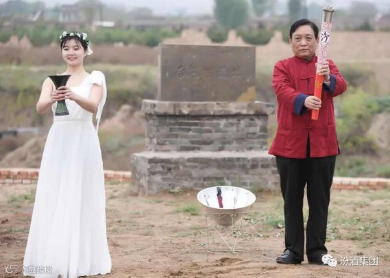 在“行走的汾酒”2018汾酒文化大巡展启动仪式之前半个小时,汾酒集团党委书记、董事长李秋喜特意来到了杏花村酿酒遗址旁,举行了一场神圣庄严的采火仪式。