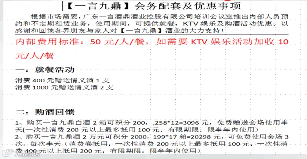【一言九鼎】成立于2015年9月,是一家专门从事酒文化传播销售于一体的综合性业务公司;2018年成功注册【一言九鼎】品牌商标;2020年后将陆续打造全套生态链产品......公司的广告口号是:做成功男人,喝一 言九鼎,有情有义有担当!