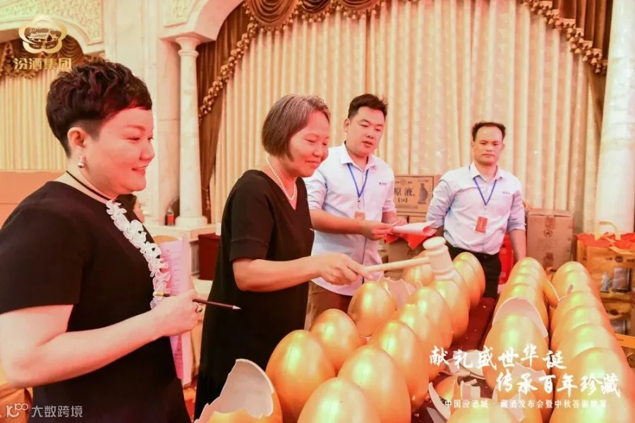 我们的70斤装的藏酒是每一瓶都是独一无二的,因为它们都有一个属于自己的编码。我们在藏酒首发的当晚率先拿出编号001,666,888,999这个四坛纪念版70斤装藏酒。与此同时,最高价者可获得6个金蛋。每个金蛋都有不一样的惊喜。